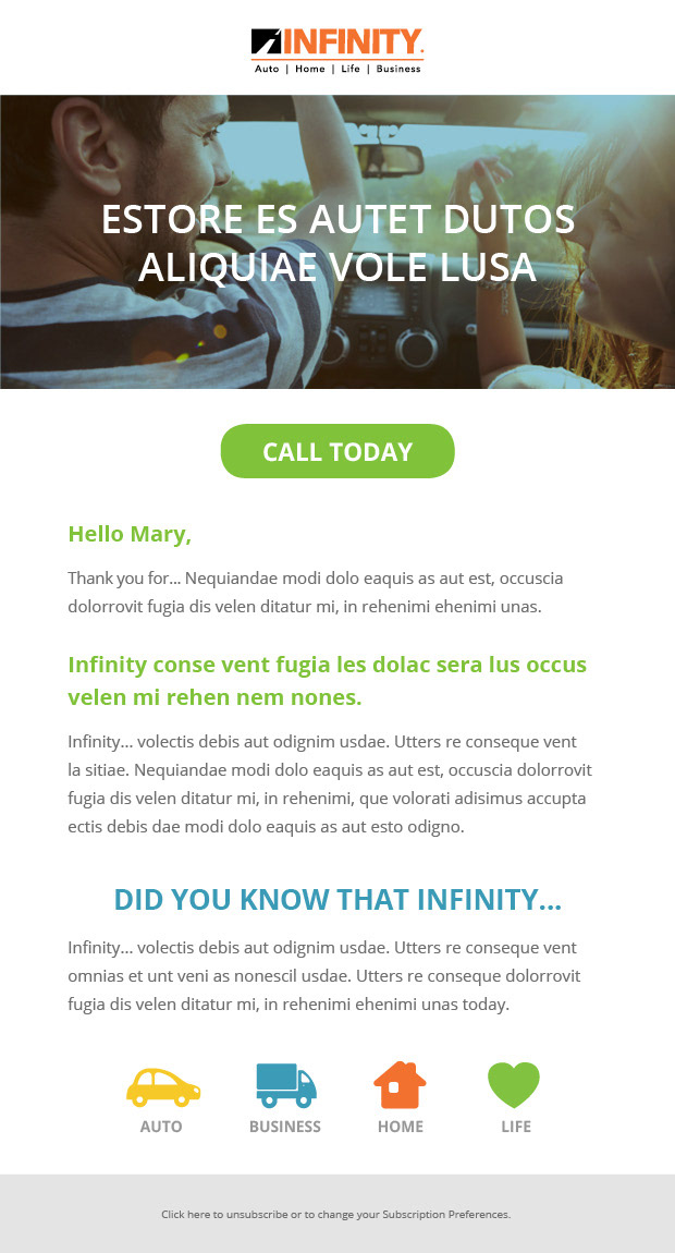 Infinity Insurance Email Templates