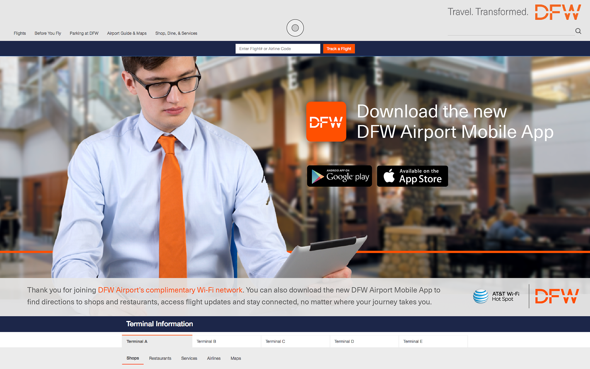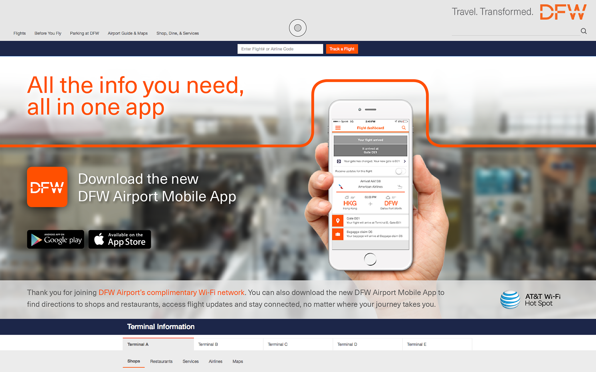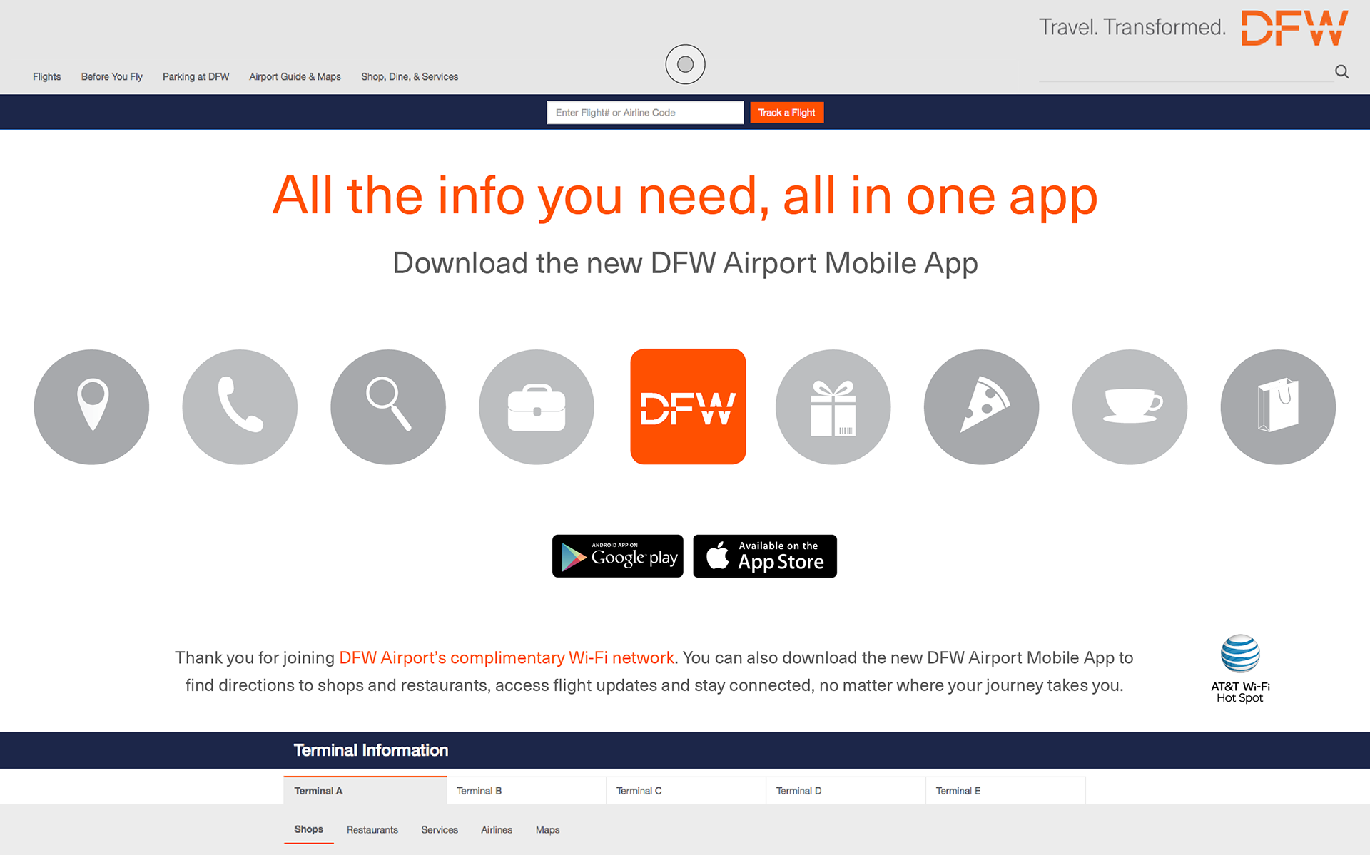 DFW Airport Moblie App Landing Page
